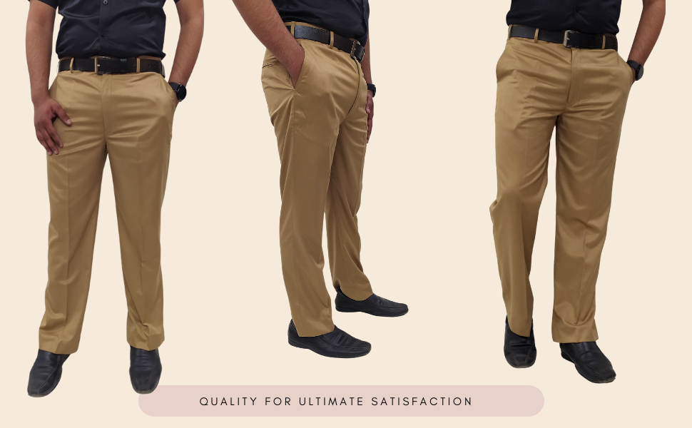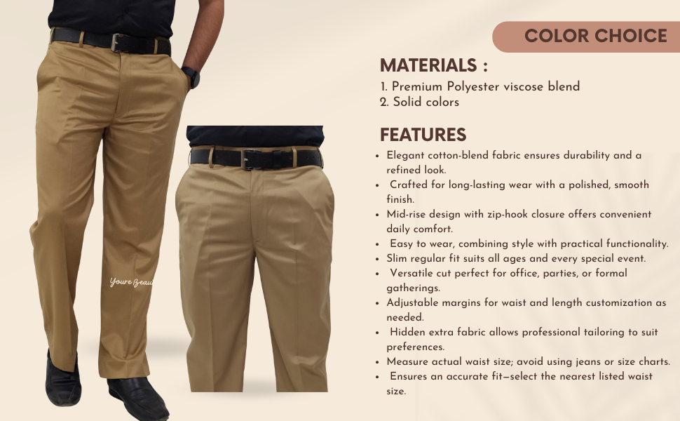 Clavelite mens regular fit formal flat front trouser – polyester blend solid brown gents dress pant