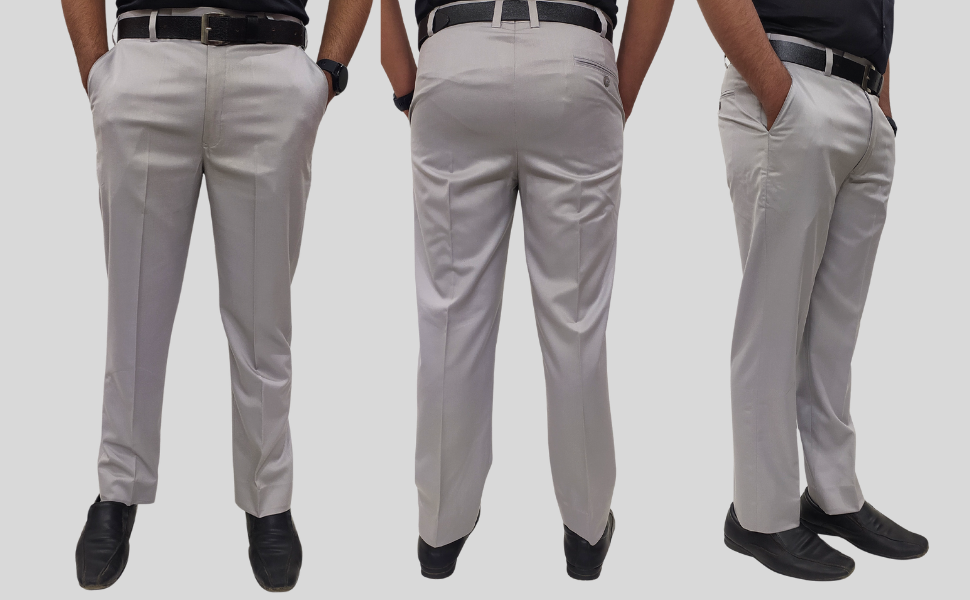 Clavelite mens regular fit formal flat front trouser – polyester blend solid light grey gents dress pant