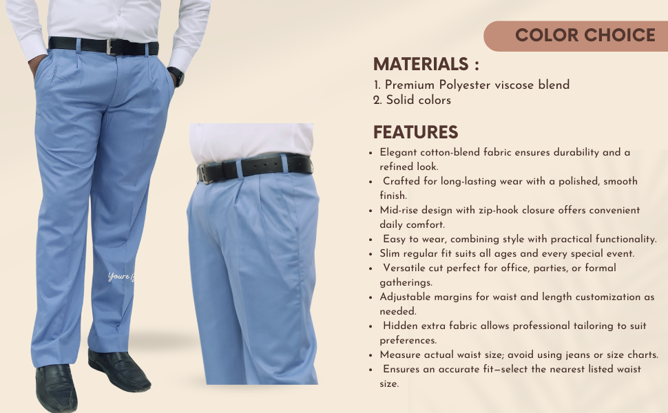 Hook-and-eye with zip fly closure provides a secure and polished finish.